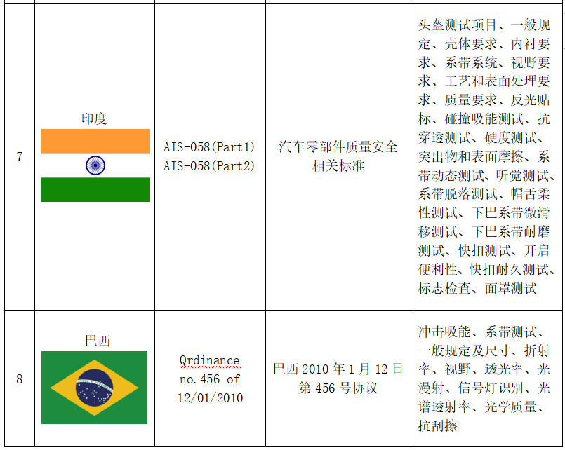 INMETRO认证:该认证由巴西国家计量、标准化与工业质量局负责实施,根据Ordinance No.456法规,对摩托车头盔进行强制性认证,适用标准为Ordinanceno.456 of12/01/2010。